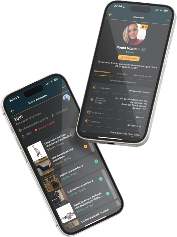Alunos encontram personal trainers por especialidade, localização e tipo de atendimento, sem taxa de intermediação da plataforma.